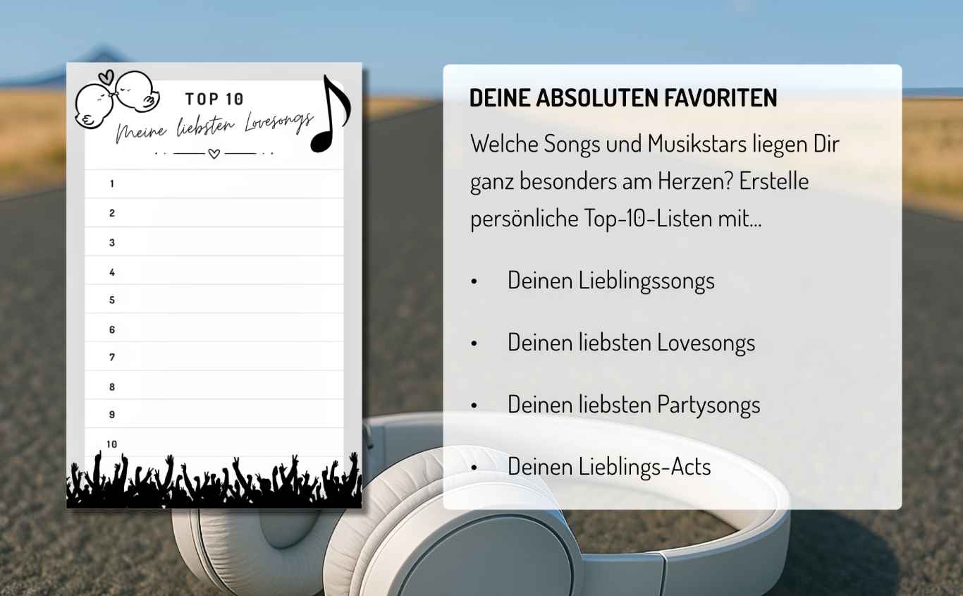 Welches Lied lief bei Deinem ersten Kuss? Welche Partyhymne aus Deiner Jugend bereitet Dir noch immer gute Laune? Und welcher Titel hat Dir beim letzten Liebeskummer Trost gespendet?
